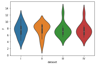 sns.violinplot(data=df,x="dataset",y="y")